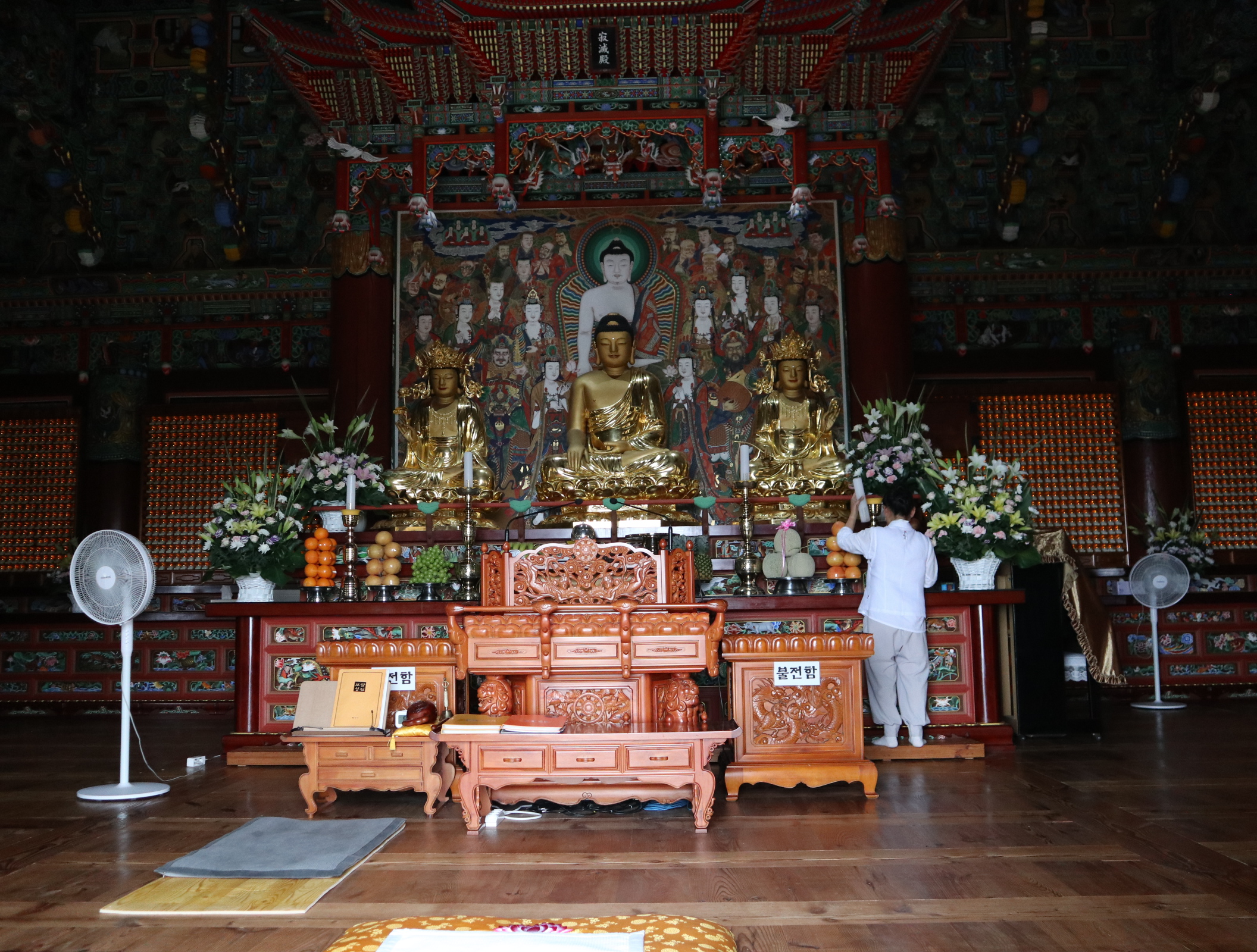 집사람은 보광전(普光殿), 대웅전(大雄殿), 삼존불상(三尊佛像),